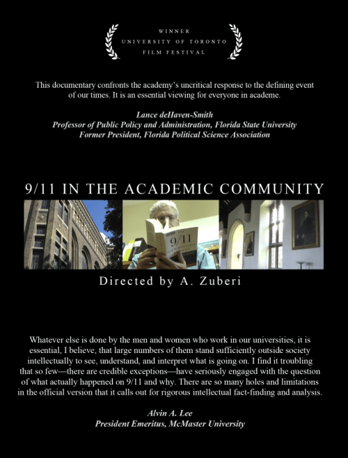 9/11 in the Academic Community, awarded for “Documentary Achievement” at the University of Toronto Film Festival, is now available for educational purposes.